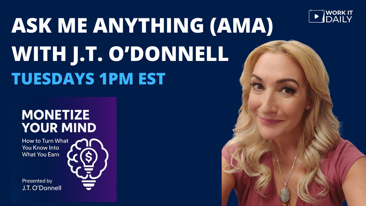 Every Tuesday, J.T. goes live for Q&A on how to Monetize Your Mind so you can take advantage of the future of work and the $480B economy that will pay you for what you know.